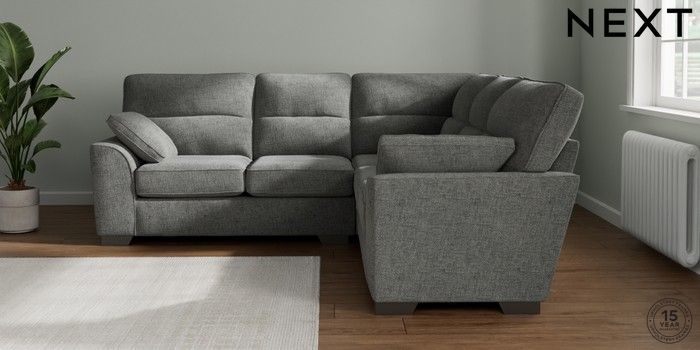 7.2.10 Stamford Highback Medium Corner Sofa - Universal Chunky Chenille Dark Grey Large Square Angle - Gunmetal | Made Click here to use our website with more accessibility support, for example screen readers