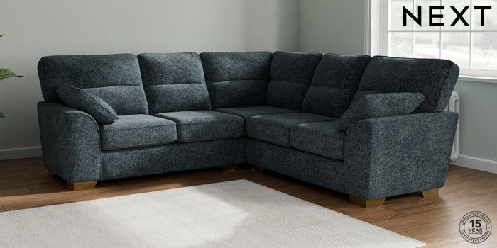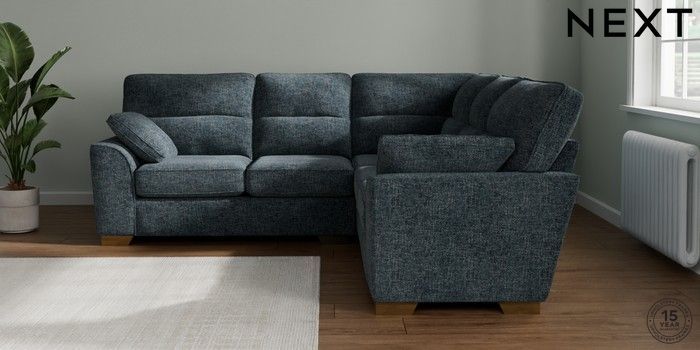 7.2.10 Stamford Highback Medium Corner Sofa - Universal Chunky Chenille Dark Navy Blue Large Square Angle - Brushed Brass | Made Click here to use our website with more accessibility support, for example screen readers