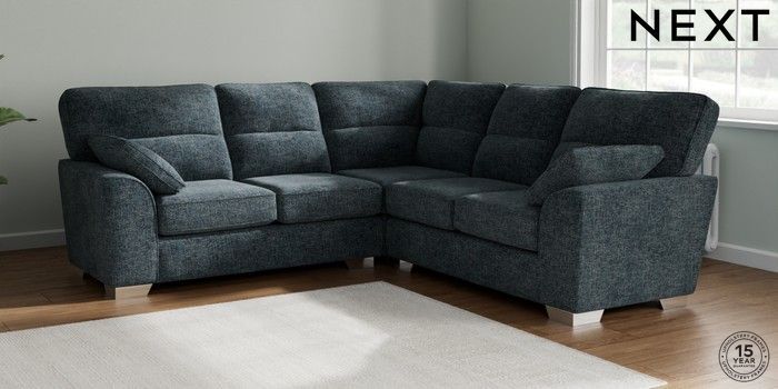 7.2.10 Stamford Highback Medium Corner Sofa - Universal Chunky Chenille Dark Navy Blue Large Square Angle - Chrome Metal | Made Click here to use our website with more accessibility support, for example screen readers