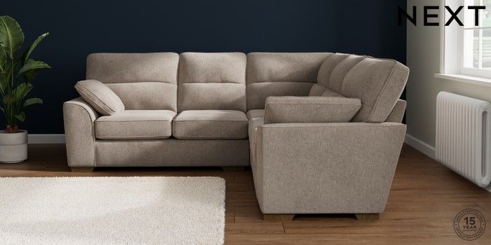 7.2.10 Stamford Highback Medium Corner Sofa - Universal Chunky Chenille Light Dove Large Square Angle - Mid | Made Click here to use our website with more accessibility support, for example screen readers