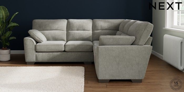 7.2.10 Stamford Highback Medium Corner Sofa - Universal Chunky Chenille Light Grey Large Square Angle - Gunmetal | Made Click here to use our website with more accessibility support, for example screen readers