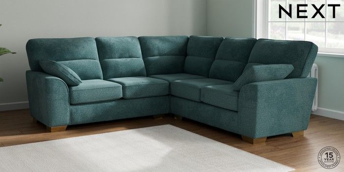 7.2.10 Stamford Highback Medium Corner Sofa - Universal Chunky Chenille Mid Teal Green Large Square Angle - Brushed Brass | Made Click here to use our website with more accessibility support, for example screen readers