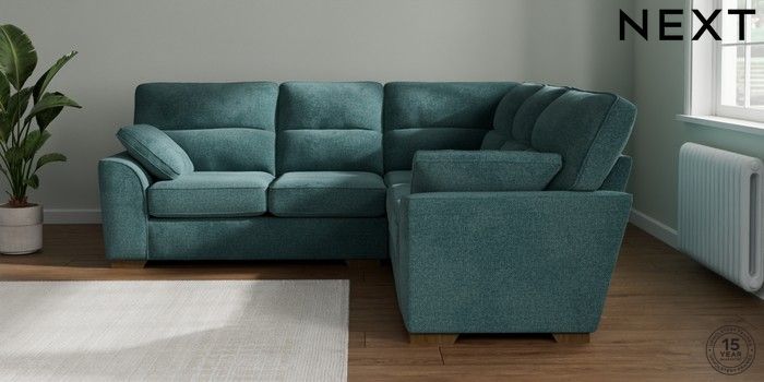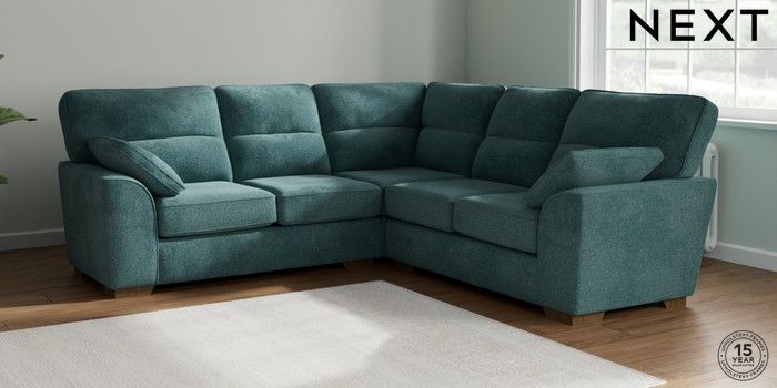 7.2.10 Stamford Highback Medium Corner Sofa - Universal Chunky Chenille Mid Teal Green Large Square Angle - Mid | Made Click here to use our website with more accessibility support, for example screen readers