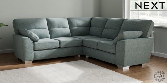 7.2.10 Stamford Highback Medium Corner Sofa - Universal Chunky Marl Mid Blue Large Square Angle - Chrome Metal | Made Click here to use our website with more accessibility support, for example screen readers