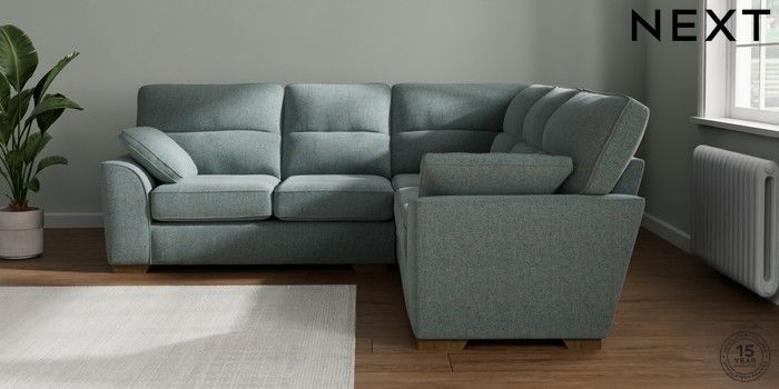 7.2.10 Stamford Highback Medium Corner Sofa - Universal Chunky Marl Mid Blue Large Square Angle - Mid | Made Click here to use our website with more accessibility support, for example screen readers