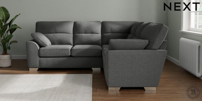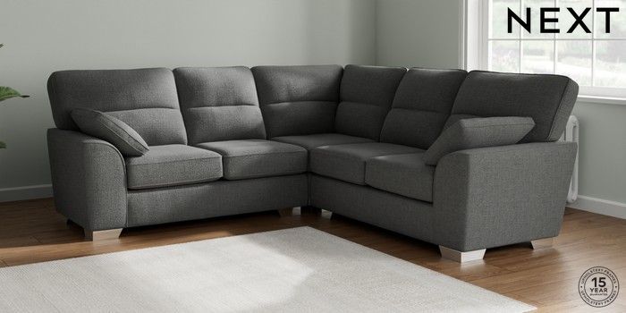 7.2.10 Stamford Highback Medium Corner Sofa - Universal Chunky Texture Dark Grey Large Square Angle - Chrome Metal | Made Click here to use our website with more accessibility support, for example screen readers