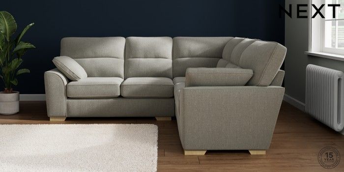 7.2.10 Stamford Highback Medium Corner Sofa - Universal Chunky Texture Dove Large Square Angle - Light | Made Click here to use our website with more accessibility support, for example screen readers