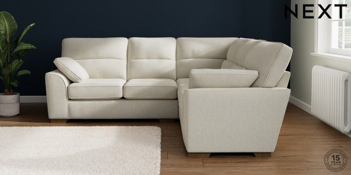 7.2.10 Stamford Highback Medium Corner Sofa - Universal Chunky Texture Oyster Large Square Angle - Mid | Made Click here to use our website with more accessibility support, for example screen readers