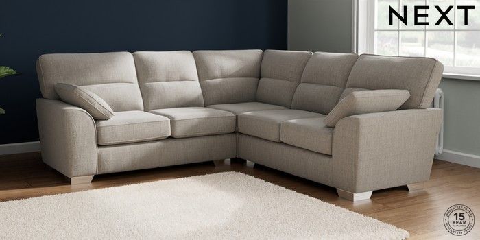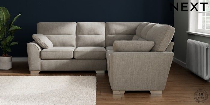 7.2.10 Stamford Highback Medium Corner Sofa - Universal Chunky Weave Dove Grey Large Square Angle - Chrome Metal | Made Click here to use our website with more accessibility support, for example screen readers