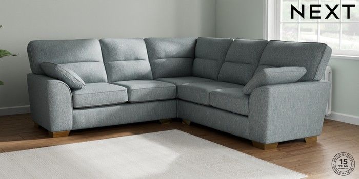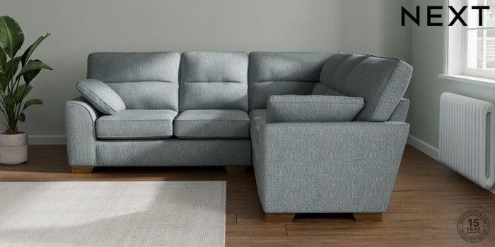 7.2.10 Stamford Highback Medium Corner Sofa - Universal Chunky Weave Mid Blue Large Square Angle - Brushed Brass | Made Click here to use our website with more accessibility support, for example screen readers