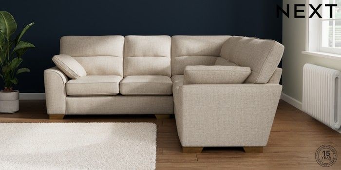 7.2.10 Stamford Highback Medium Corner Sofa - Universal Chunky Weave Mid Natural Large Square Angle - Brushed Brass | Made Click here to use our website with more accessibility support, for example screen readers