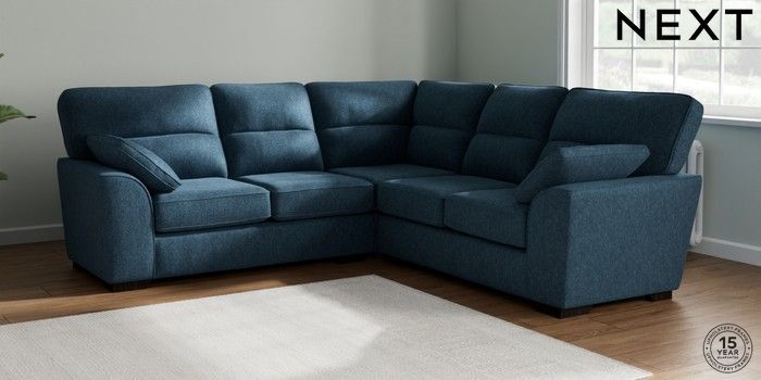 7.2.10 Stamford Highback Medium Corner Sofa - Universal Cotswold Chenille Dark Blue Large Square Angle - Dark | Made Click here to use our website with more accessibility support, for example screen readers