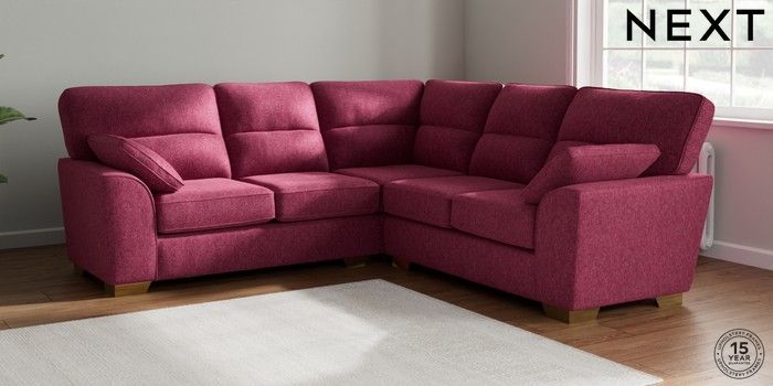7.2.10 Stamford Highback Medium Corner Sofa - Universal Cotswold Chenille Dark Raspberry Pink Large Square Angle - Brushed Brass | Made Click here to use our website with more accessibility support, for example screen readers