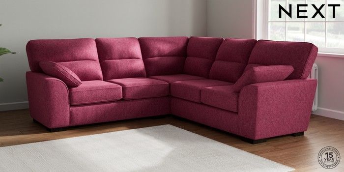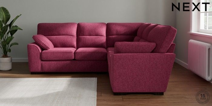 7.2.10 Stamford Highback Medium Corner Sofa - Universal Cotswold Chenille Dark Raspberry Pink Large Square Angle - Dark | Made Click here to use our website with more accessibility support, for example screen readers