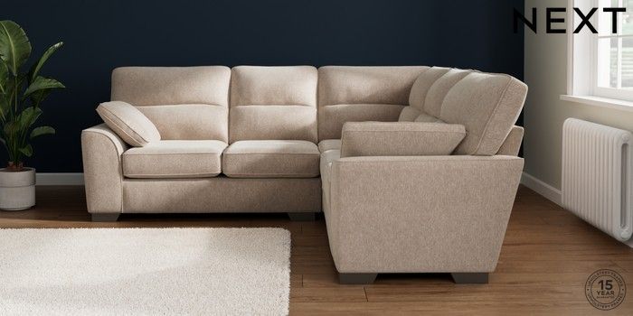 7.2.10 Stamford Highback Medium Corner Sofa - Universal Cotswold Chenille Light Natural Large Square Angle - Gunmetal | Made Click here to use our website with more accessibility support, for example screen readers