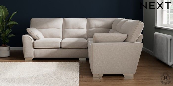 7.2.10 Stamford Highback Medium Corner Sofa - Universal Cotswold Chenille Oyster Large Square Angle - Chrome Metal | Made Click here to use our website with more accessibility support, for example screen readers