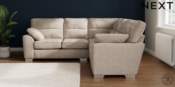 7.2.10 Stamford Highback Medium Corner Sofa - Universal Distressed Velour Mid Natural Large Square Angle - Chrome Metal | Made Click here to use our website with more accessibility support, for example screen readers