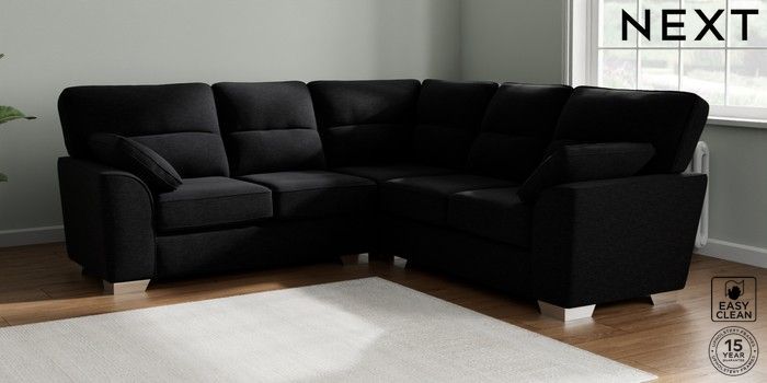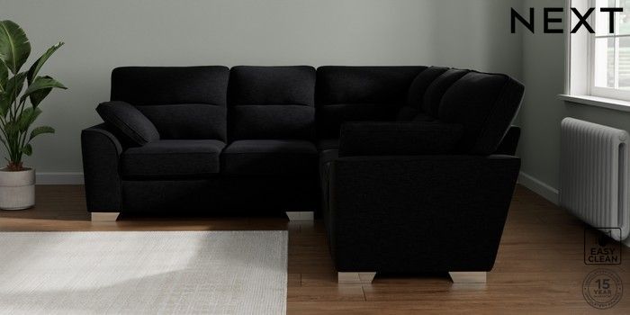 7.2.10 Stamford Highback Medium Corner Sofa - Universal Fine Chenille Easy Clean Black Large Square Angle - Chrome Metal | Made Click here to use our website with more accessibility support, for example screen readers