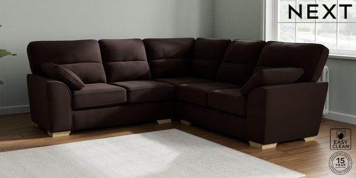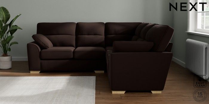 7.2.10 Stamford Highback Medium Corner Sofa - Universal Fine Chenille Easy Clean Chocolate Brown Large Square Angle - Light | Made Click here to use our website with more accessibility support, for example screen readers
