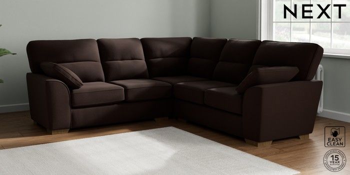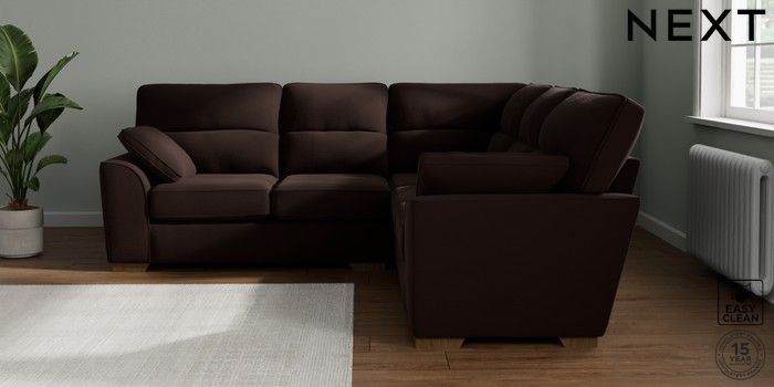 7.2.10 Stamford Highback Medium Corner Sofa - Universal Fine Chenille Easy Clean Chocolate Brown Large Square Angle - Mid | Made Click here to use our website with more accessibility support, for example screen readers