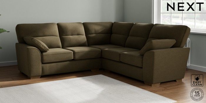 7.2.10 Stamford Highback Medium Corner Sofa - Universal Fine Chenille Easy Clean Dark Moss Green Large Square Angle - Mid | Made Click here to use our website with more accessibility support, for example screen readers