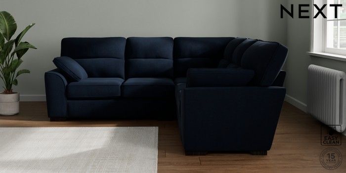 7.2.10 Stamford Highback Medium Corner Sofa - Universal Fine Chenille Easy Clean Dark Navy Blue Large Square Angle - Dark | Made Click here to use our website with more accessibility support, for example screen readers