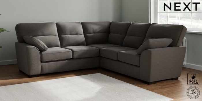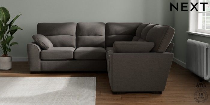 7.2.10 Stamford Highback Medium Corner Sofa - Universal Fine Chenille Easy Clean Dark Smoke Grey Large Square Angle - Dark | Made Click here to use our website with more accessibility support, for example screen readers