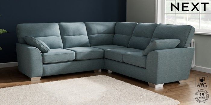 7.2.10 Stamford Highback Medium Corner Sofa - Universal Fine Chenille Easy Clean Mid Blue Large Square Angle - Chrome Metal | Made Click here to use our website with more accessibility support, for example screen readers