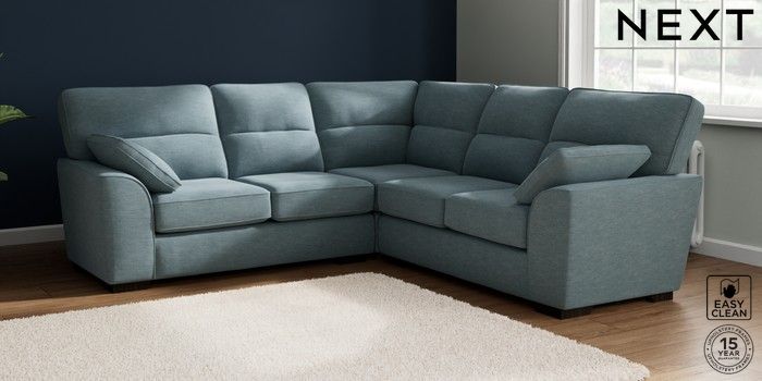 7.2.10 Stamford Highback Medium Corner Sofa - Universal Fine Chenille Easy Clean Mid Blue Large Square Angle - Dark | Made Click here to use our website with more accessibility support, for example screen readers