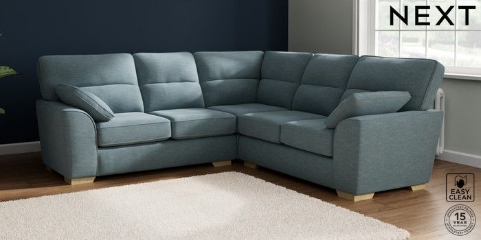7.2.10 Stamford Highback Medium Corner Sofa - Universal Fine Chenille Easy Clean Mid Blue Large Square Angle - Light | Made Click here to use our website with more accessibility support, for example screen readers