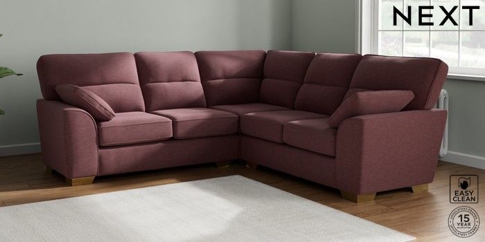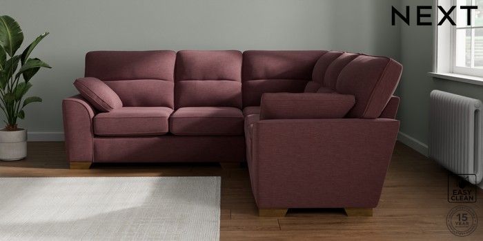7.2.10 Stamford Highback Medium Corner Sofa - Universal Fine Chenille Easy Clean Mid Mulberry Purple Large Square Angle - Brushed Brass | Made Click here to use our website with more accessibility support, for example screen readers