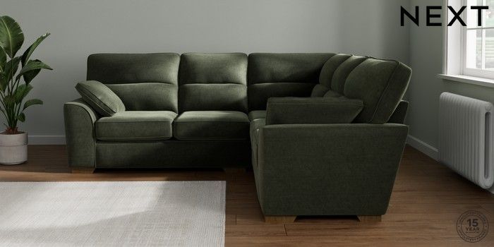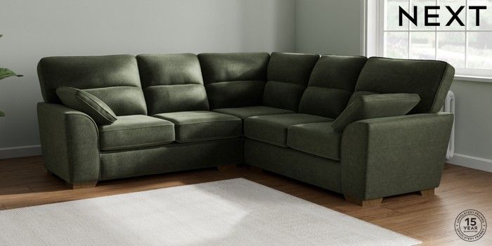 7.2.10 Stamford Highback Medium Corner Sofa - Universal Luxe Chenille Mid Green Large Square Angle - Mid | Made Click here to use our website with more accessibility support, for example screen readers