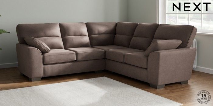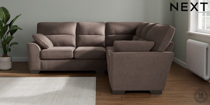 7.2.10 Stamford Highback Medium Corner Sofa - Universal Luxe Chenille Mink Brown Large Square Angle - Gunmetal | Made Click here to use our website with more accessibility support, for example screen readers