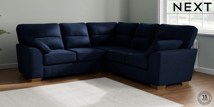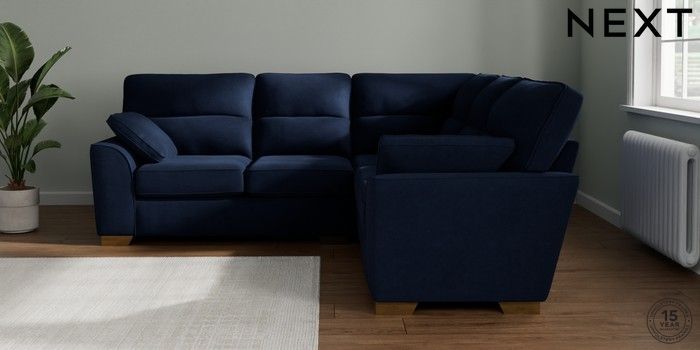 7.2.10 Stamford Highback Medium Corner Sofa - Universal Luxe Chenille Navy Blue Large Square Angle - Brushed Brass | Made Click here to use our website with more accessibility support, for example screen readers