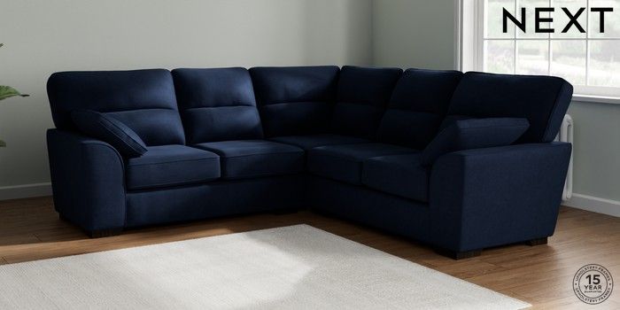 7.2.10 Stamford Highback Medium Corner Sofa - Universal Luxe Chenille Navy Blue Large Square Angle - Dark | Made Click here to use our website with more accessibility support, for example screen readers