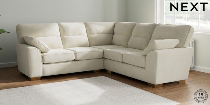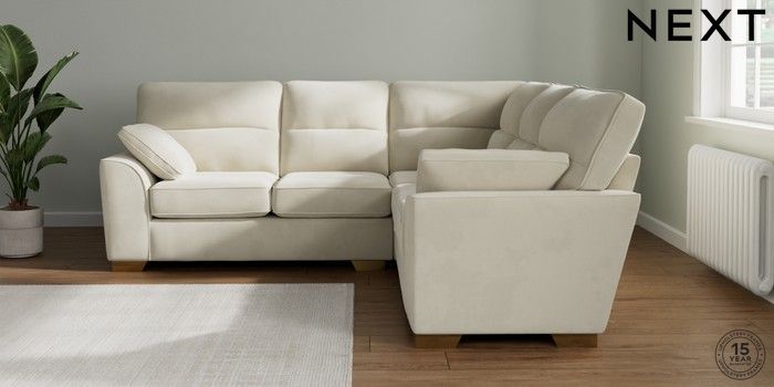 7.2.10 Stamford Highback Medium Corner Sofa - Universal Luxe Chenille Oyster Large Square Angle - Brushed Brass | Made Click here to use our website with more accessibility support, for example screen readers