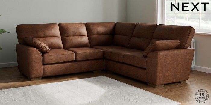 7.2.10 Stamford Highback Medium Corner Sofa - Universal Monza Faux Leather Easy Clean Chestnut Brown Large Square Angle - Mid | Made Click here to use our website with more accessibility support, for example screen readers