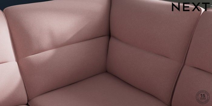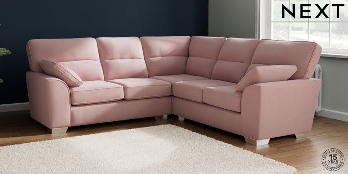 7.2.10 Stamford Highback Medium Corner Sofa - Universal Natural Mix Light Rose Pink Large Square Angle - Chrome Metal | Made Click here to use our website with more accessibility support, for example screen readers