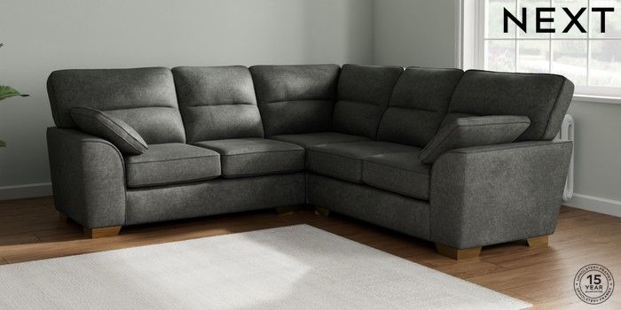 7.2.10 Stamford Highback Medium Corner Sofa - Universal Plush Chenille Dark Grey Large Square Angle - Brushed Brass | Made Click here to use our website with more accessibility support, for example screen readers