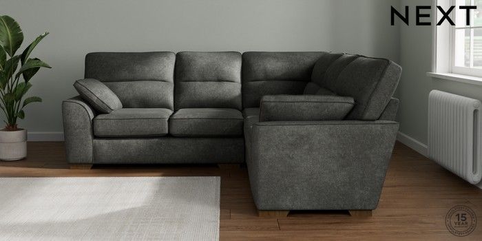 7.2.10 Stamford Highback Medium Corner Sofa - Universal Plush Chenille Dark Grey Large Square Angle - Mid | Made Click here to use our website with more accessibility support, for example screen readers