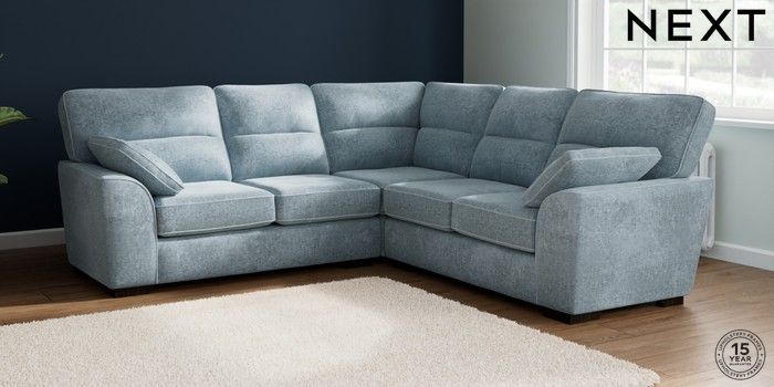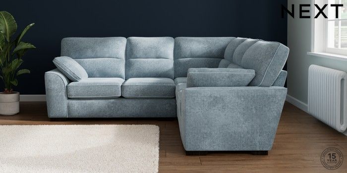 7.2.10 Stamford Highback Medium Corner Sofa - Universal Plush Chenille Light Blue Large Square Angle - Dark | Made Click here to use our website with more accessibility support, for example screen readers