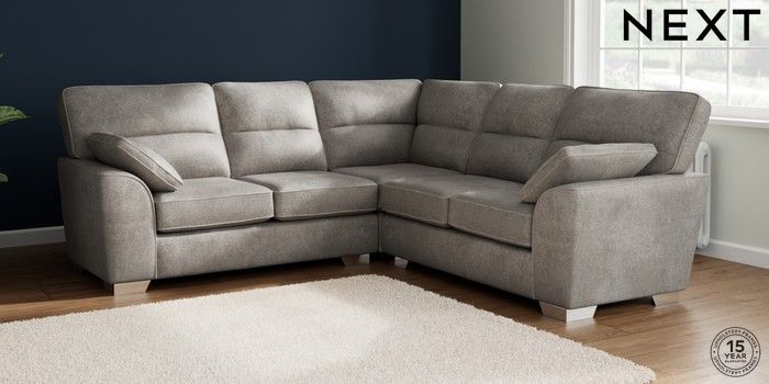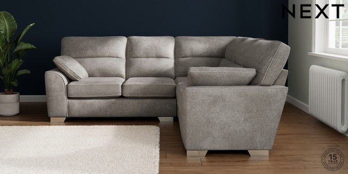 7.2.10 Stamford Highback Medium Corner Sofa - Universal Plush Chenille Light Grey Large Square Angle - Chrome Metal | Made Click here to use our website with more accessibility support, for example screen readers