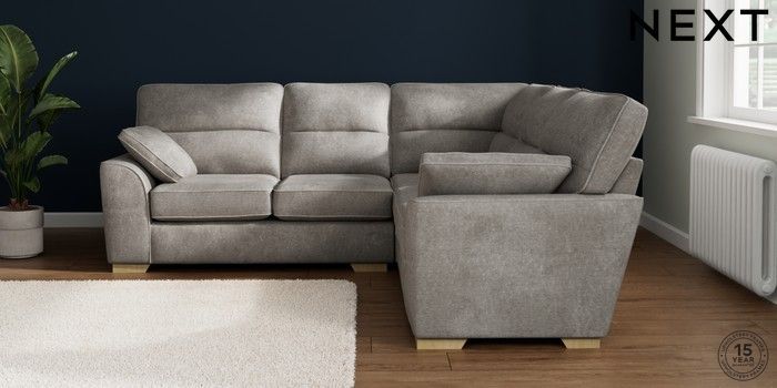 7.2.10 Stamford Highback Medium Corner Sofa - Universal Plush Chenille Light Grey Large Square Angle - Light | Made Click here to use our website with more accessibility support, for example screen readers