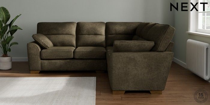 7.2.10 Stamford Highback Medium Corner Sofa - Universal Plush Chenille Moss Green Large Square Angle - Brushed Brass | Made Click here to use our website with more accessibility support, for example screen readers