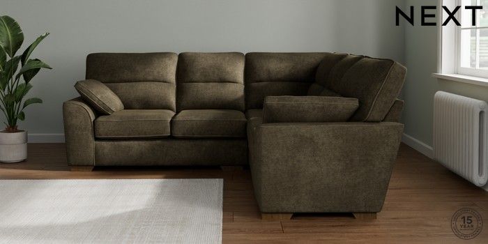 7.2.10 Stamford Highback Medium Corner Sofa - Universal Plush Chenille Moss Green Large Square Angle - Mid | Made Click here to use our website with more accessibility support, for example screen readers