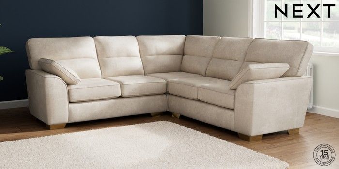 7.2.10 Stamford Highback Medium Corner Sofa - Universal Plush Chenille Oyster Large Square Angle - Brushed Brass | Made Click here to use our website with more accessibility support, for example screen readers