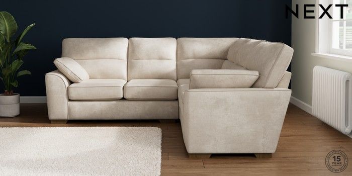 7.2.10 Stamford Highback Medium Corner Sofa - Universal Plush Chenille Oyster Large Square Angle - Mid | Made Click here to use our website with more accessibility support, for example screen readers