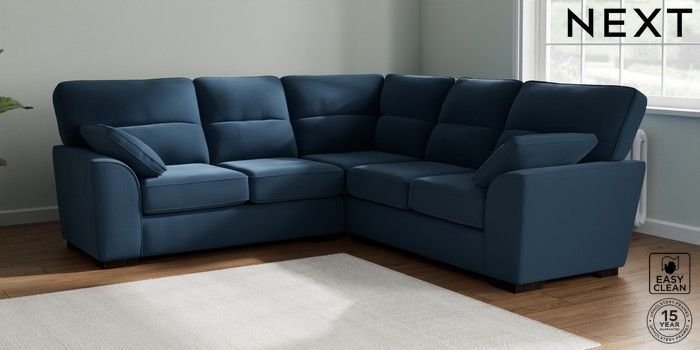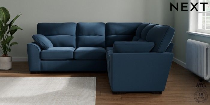 7.2.10 Stamford Highback Medium Corner Sofa - Universal Plush Velvet Easy Clean Airforce Blue Large Square Angle - Dark | Made Click here to use our website with more accessibility support, for example screen readers