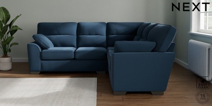 7.2.10 Stamford Highback Medium Corner Sofa - Universal Plush Velvet Easy Clean Airforce Blue Large Square Angle - Gunmetal | Made Click here to use our website with more accessibility support, for example screen readers