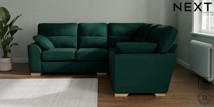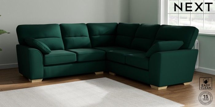 7.2.10 Stamford Highback Medium Corner Sofa - Universal Plush Velvet Easy Clean Bottle Green Large Square Angle - Light | Made Click here to use our website with more accessibility support, for example screen readers